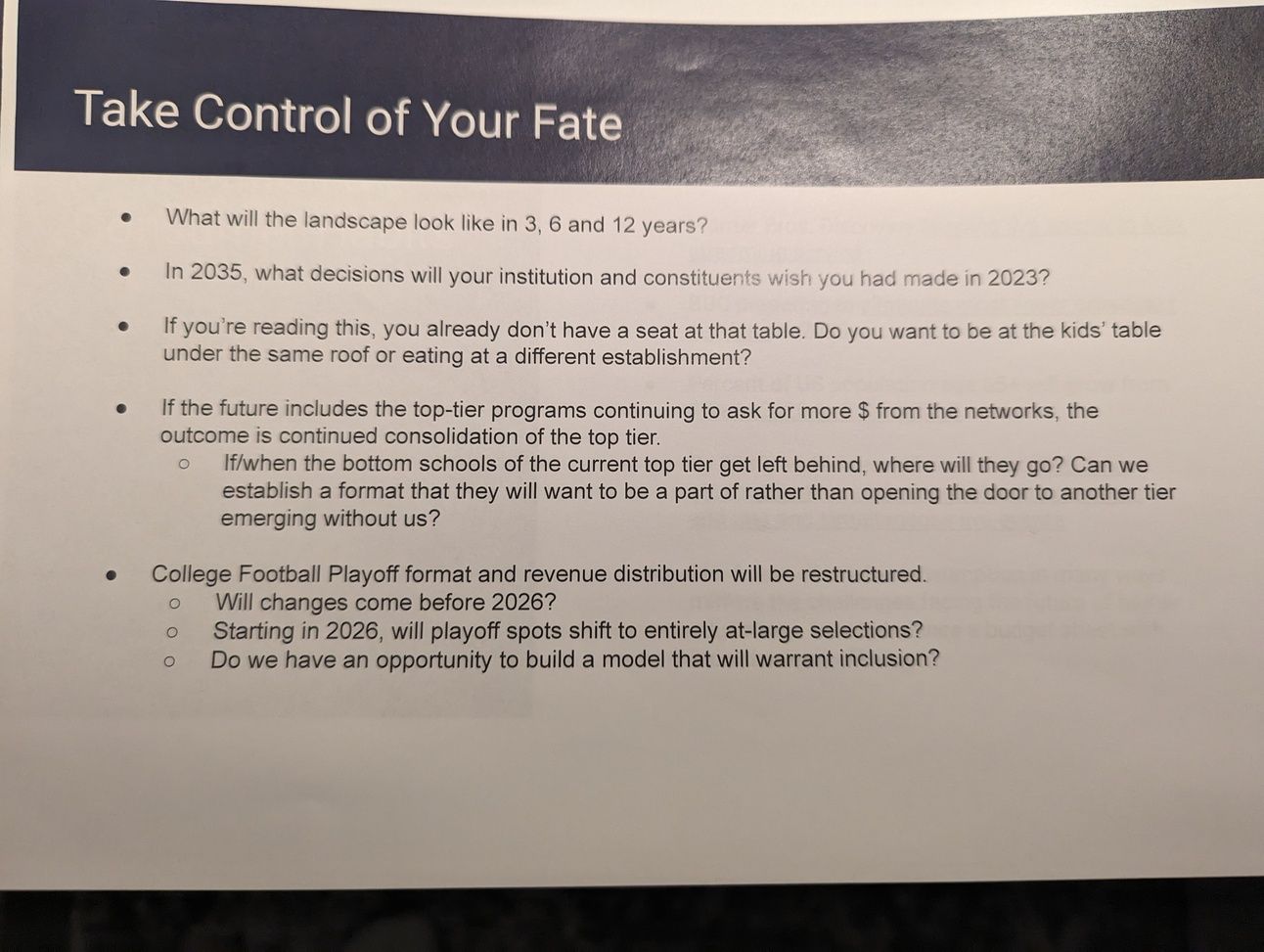 The presentation, titled Control What You Can Control: An opportunity to create a stable feature for college athletics in the West, calls for a 24-school league that would be split into three different leagues of eight.