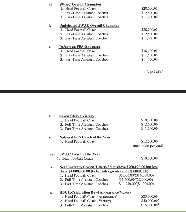 Faulk will be paid a base salary of $400,000, with incentives for winning a SWAC division championship, going undefeated, beating an FBS team, winning the Bayou Classic and driving season-ticket sales.