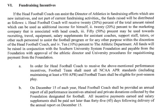 One deal that caught my attention is Marshall Faulk’s contract as the new head coach at Southern. According to the contract shared with us after we filed an open records request, Faulk’s deal is only for three years (Jan. 1, 2026 through Dec. 31, 2028), although the school’s board can extend that by one year. Even by FCS standards, that isn’t very long.