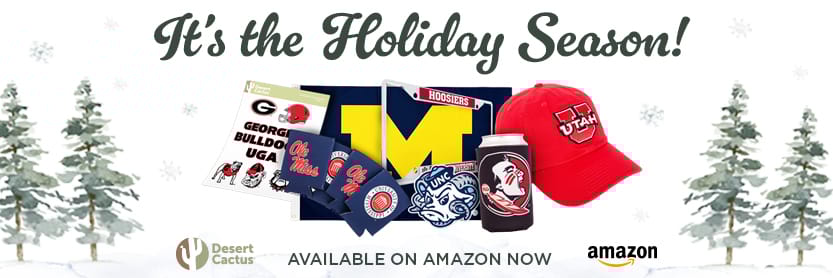 Desert Cactus is here to help you elevate your fan experience this holiday season. As an official licensee partner for more than 625 colleges and universities, they offer a wide lineup of high-quality hard-goods your supporters love: license plate frames, flags, decals, stickers, keychains and more. Last year, they shipped over 1 million orders nationwide on Amazon, and their products are now making their way to college campuses like The Ohio State University Team Shop and Indiana University’s official team shop.