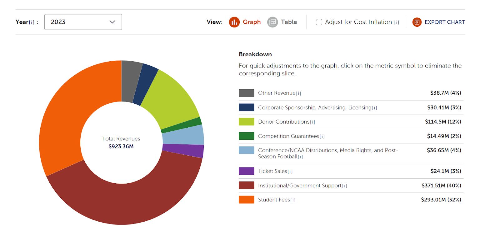 Beyond student fees, athletic departments can also just accept funding from the university itself. Sometimes this has nothing to do with cash, (a cafeteria that feeds athletes might be organized under a different department and count as a university subsidy, for example), but sometimes that’s exactly what it is…central campus handing over a check to cover athletic department operations.