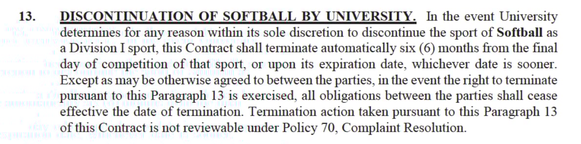 These sorts of clauses could give universities more financial flexibility, just in case, God forbid, we’re ever in an act-of-God situation again. They may also be an impetus for schools to begin clawing back a little bit of power in the increasingly one-sided deal-making over college coaching salaries. Adjuncts typically don’t get buyouts, after all.