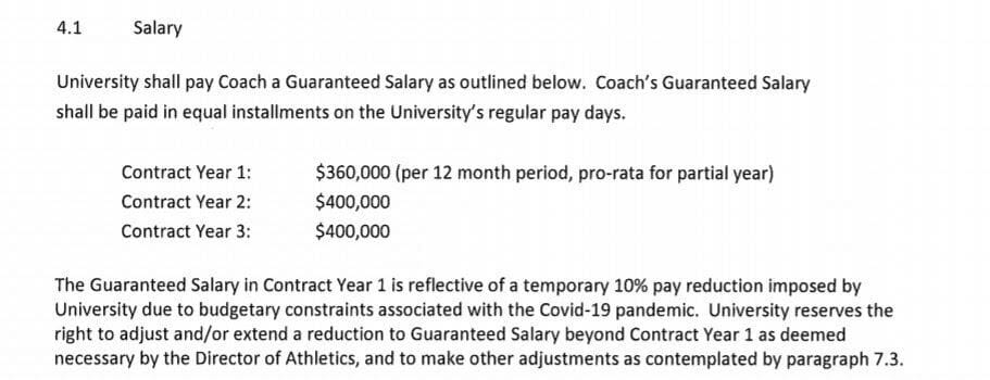 First, there are explicit COVID-19 “constraints” to his annual salary:
