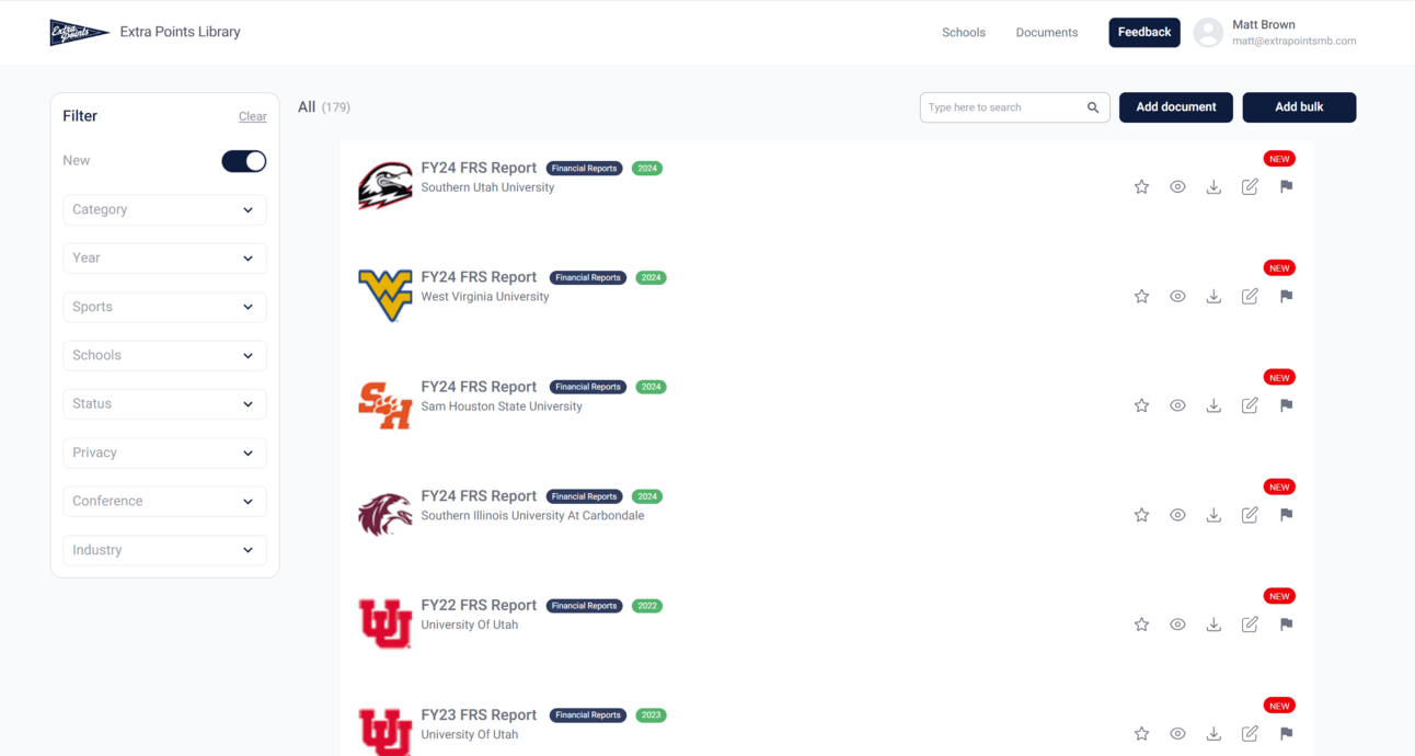 As of today, Extra Points Library has over 5,650 total documents, with more being added daily. If you want the data you need to really understand college sports, you need Library. Grab your subscription here today.