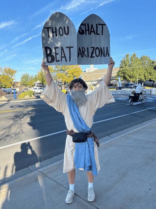 But by 11ish, those families make their way to LaVell Edwards Stadium, kids and all. Across the entire area, even among the students who woke up early to wave signs and yell at Urban Meyer, the atmosphere felt decidedly family-friendly. There were a series of races (a 5K and shorter runs for younger kids) complete with chocolate milk and blue pancakes. There were kids climbing the Cougar statues in front of the stadium, chasing each other through parking lots, and dads flocking to a golf simulator truck. The closest thing to anything anti-Arizona Wildcat I heard was some very gentle ribbing about Utah stealing their hockey team. No profanity, no actual trolling.