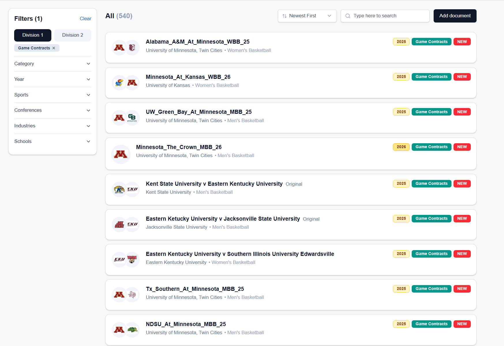 We have more than 600 game contracts currently uploaded, from football to MBB, WBB, baseball and softball, with more contracts being uploaded nearly every work day.