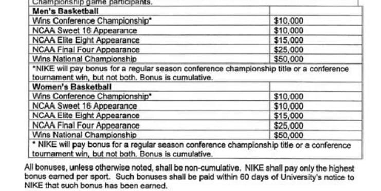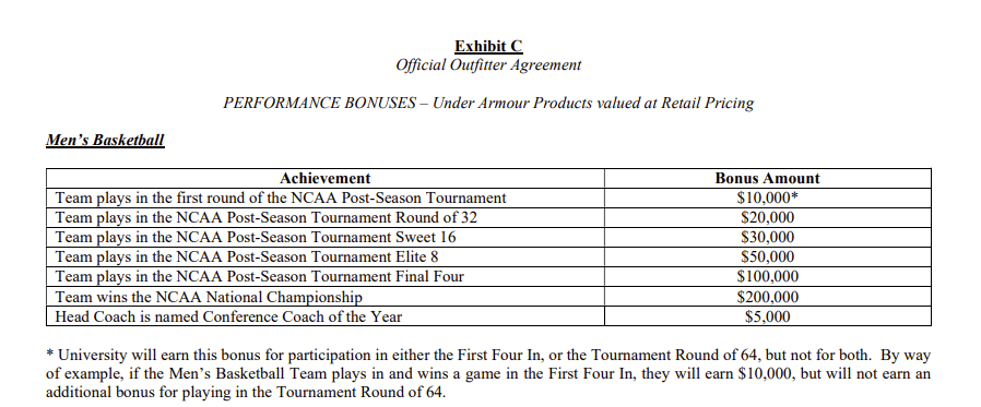 Athletic directors and coaches aren’t the only folks who typically have incentive-laden contracts. It’s also very common for a school’s athletic apparel partner to add some extra bonuses if one of their teams plays in a major tournament.